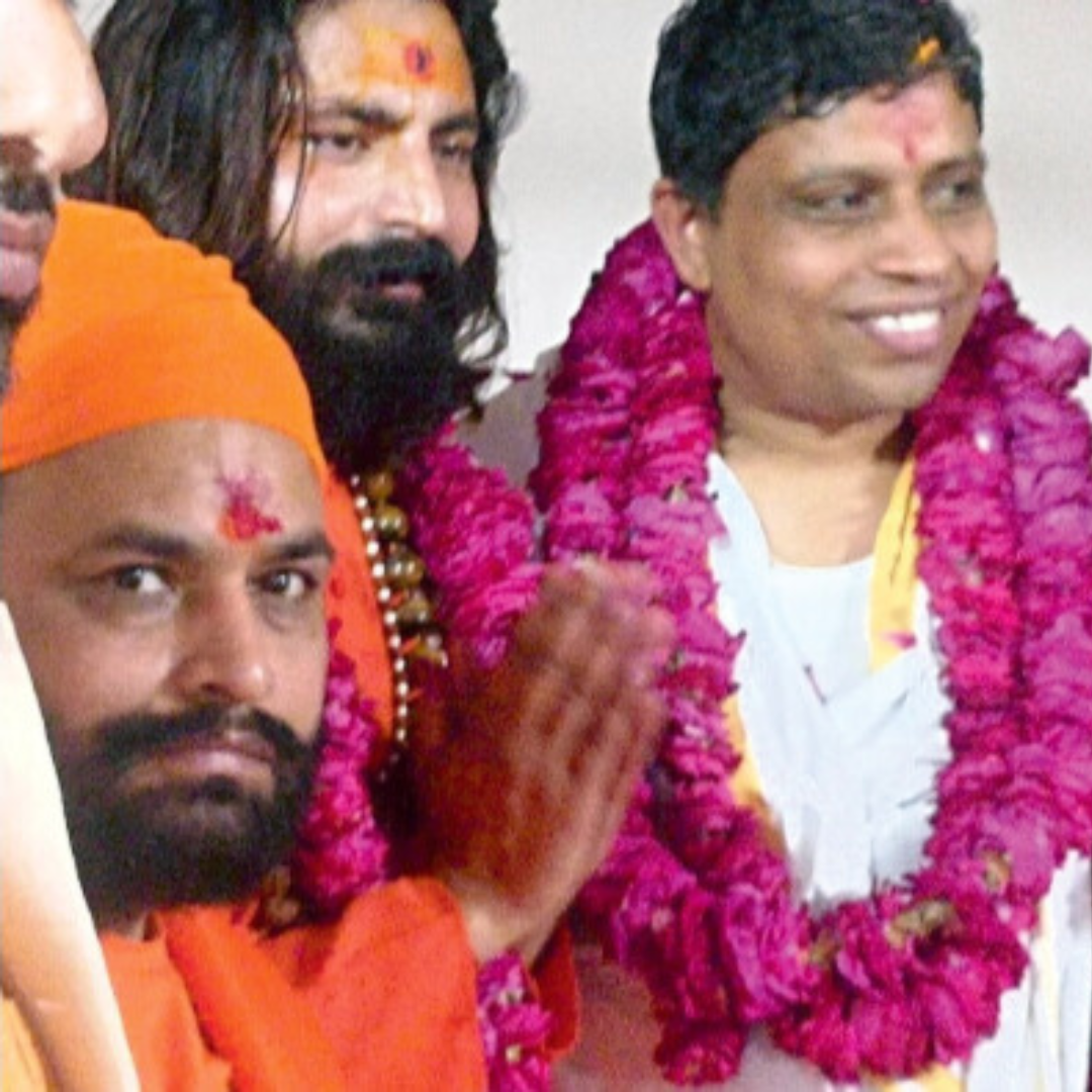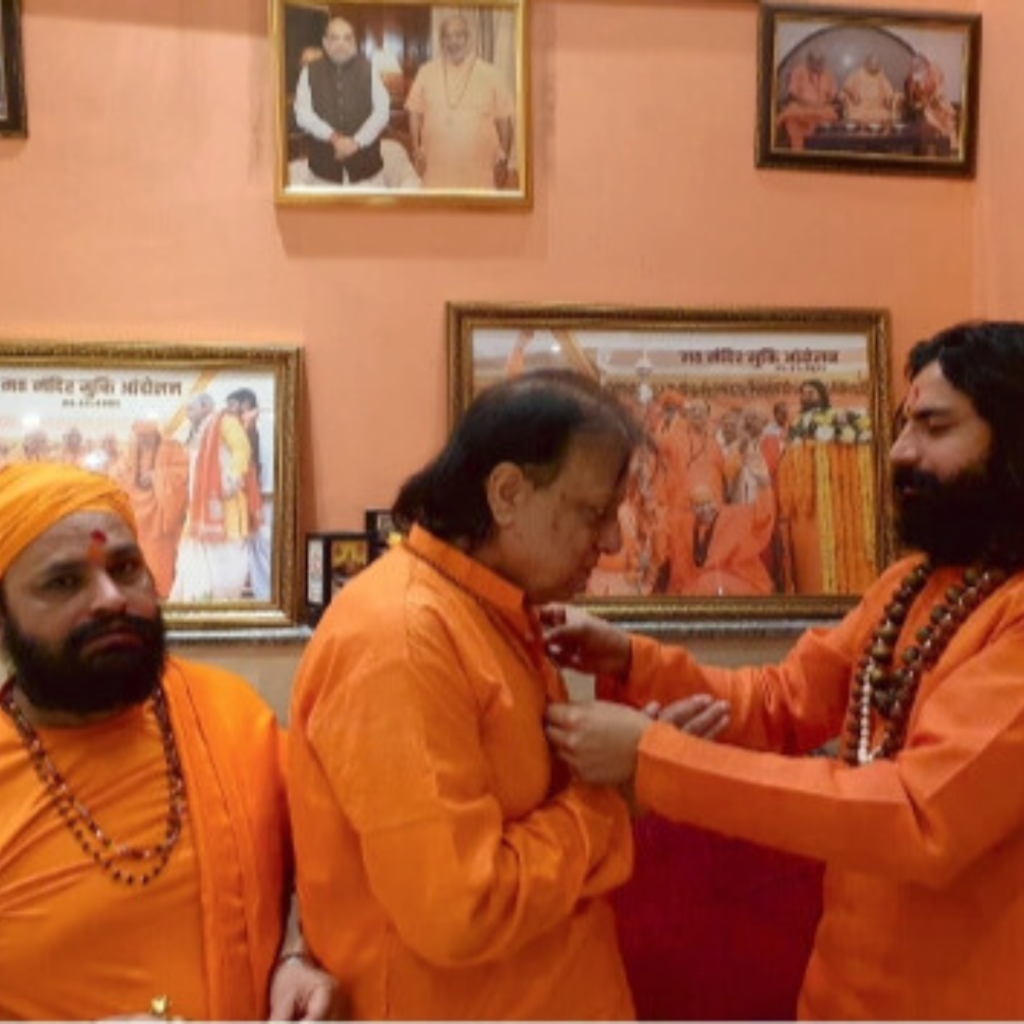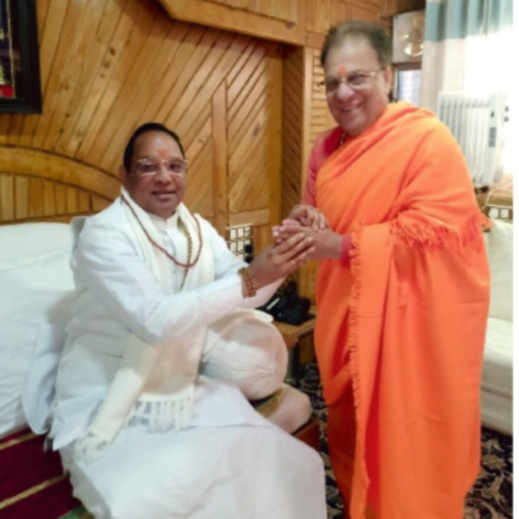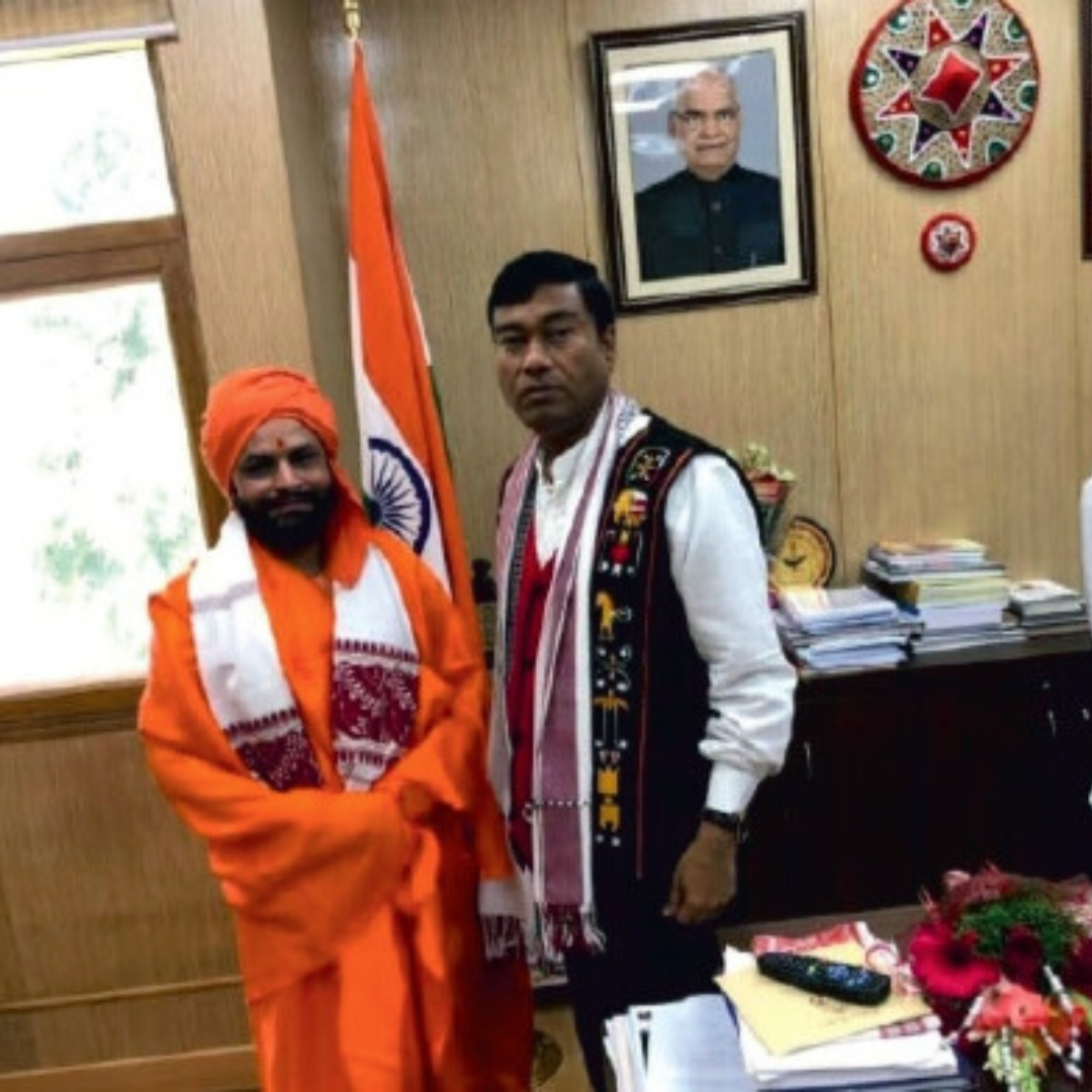 स्वामी नागेन्द्र महाराज जी माननीय रामेश्वर जी ( केद्रीय पेट्रोलियम मंत्री भारत सरकार) से शिष्टाचार वार्ता करते हुए ।